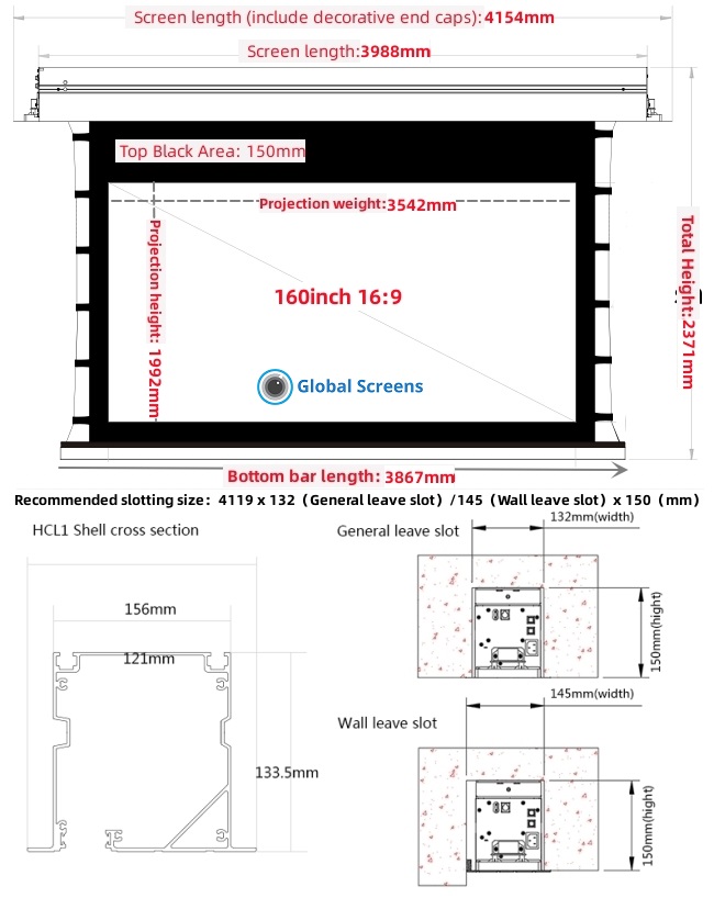 Технические характеристики Экран встраиваемый в потолок с системой натяжения Global Screens Intelligent HomeScreen ICL2-160 199*354 Pro Max4K+