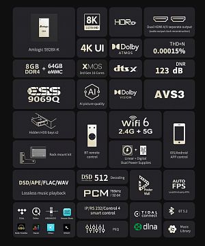 Bluetooth / AirPlay / Dolby Vision / 8K / HDR10+ / HDMI 2.1 / Wi-Fi