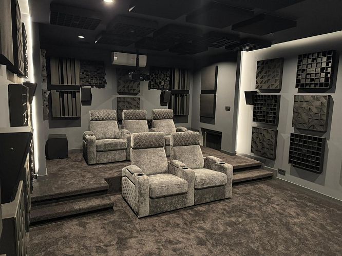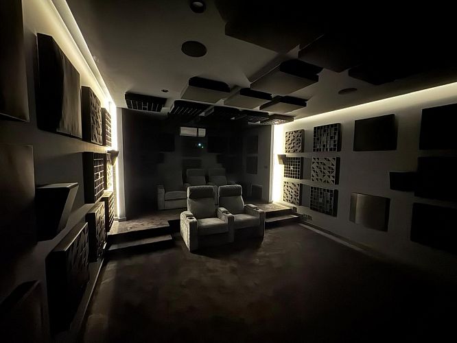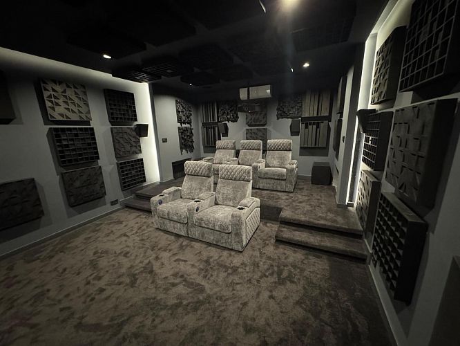 Отделка настенными акустическими панелями кинозала не наша...брак именно там(