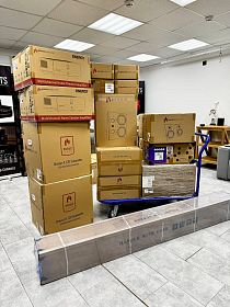Очередные домашние кинотеатры на акустике Aperion Audio приехали и ждут загрузки в машину и вперед на объект