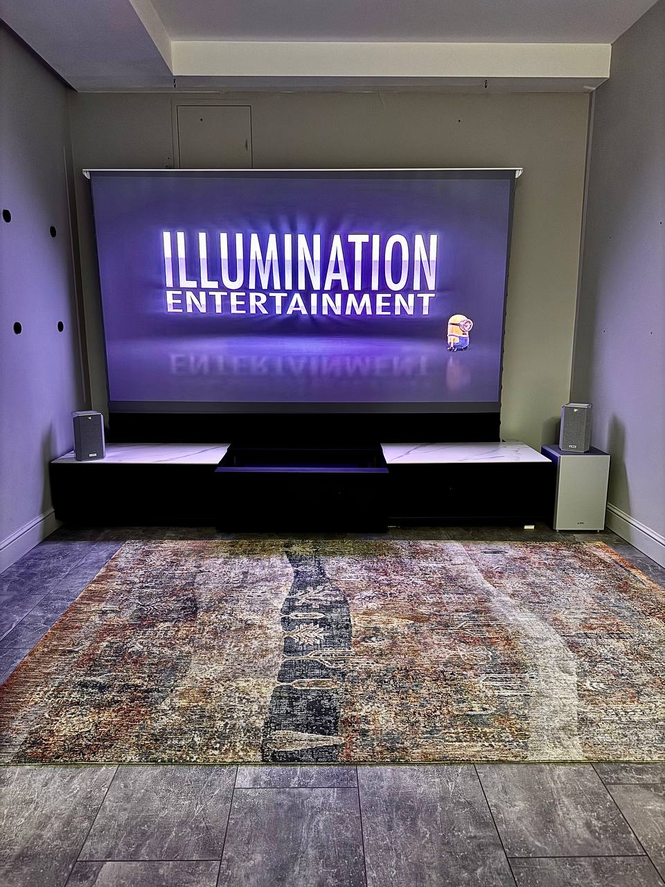 2. Моторизованный 100" ALR экран интегрирован в тумбу и выезжает автоматически при включении проектора